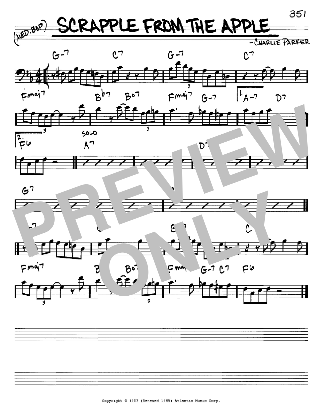 Download or print Charlie Parker Scrapple From The Apple sheet music, chords and digital score arranged for Piano Solo. This Jazz score includes 2 page(s).