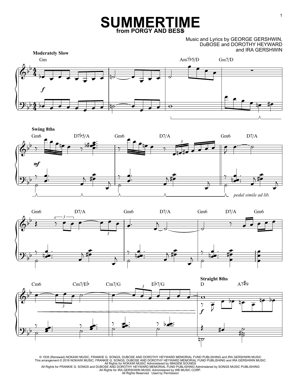 Download or print Charlie Parker Summertime (arr. Brent Edstrom) sheet music, chords and digital score arranged for Piano Solo. This Jazz score includes 3 page(s).