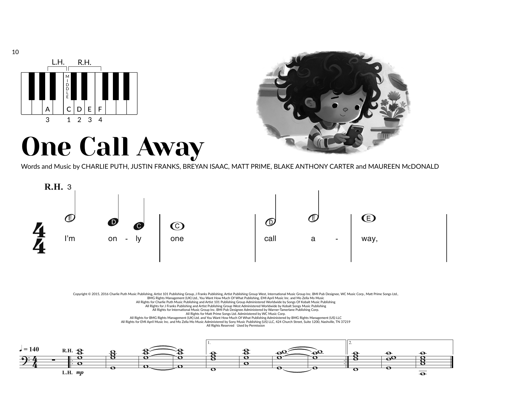 Download or print Charlie Puth One Call Away (arr. Brittany McCorriston) sheet music, chords and digital score arranged for Very Beginner Piano. This Pop score includes 2 page(s).