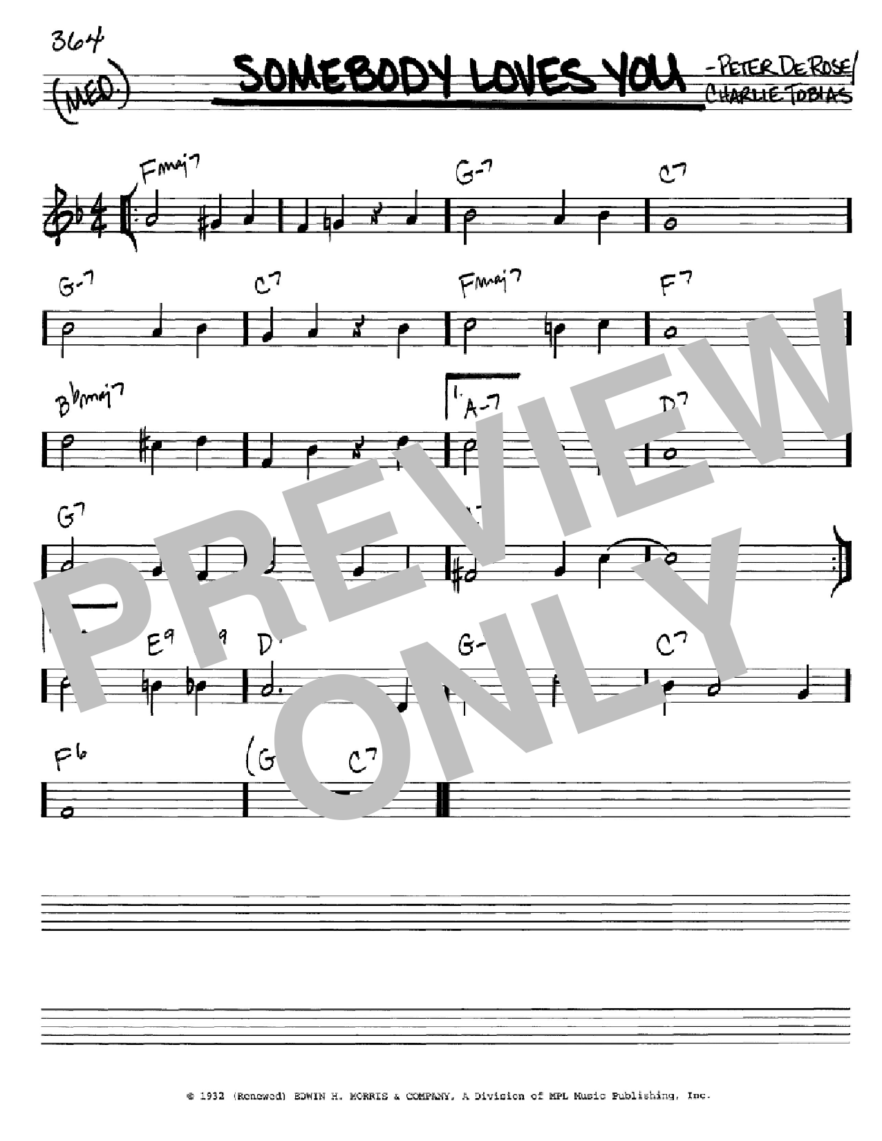 Download or print Charlie Tobias Somebody Loves You sheet music, chords and digital score arranged for Real Book – Melody & Chords – C Instruments. This Jazz score includes 1 page(s).