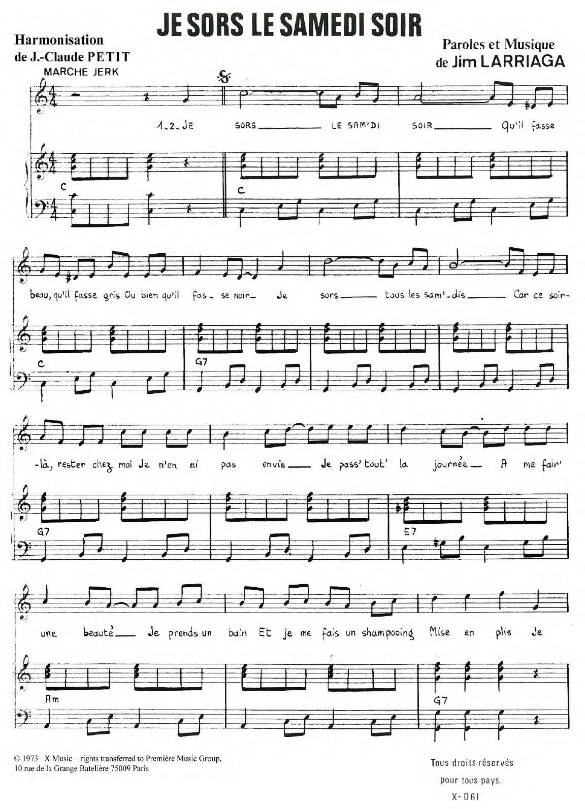 Download or print Charlotte Julian Je Sors Le Samedi Soir sheet music, chords and digital score arranged for Piano & Vocal. This Pop score includes 3 page(s).