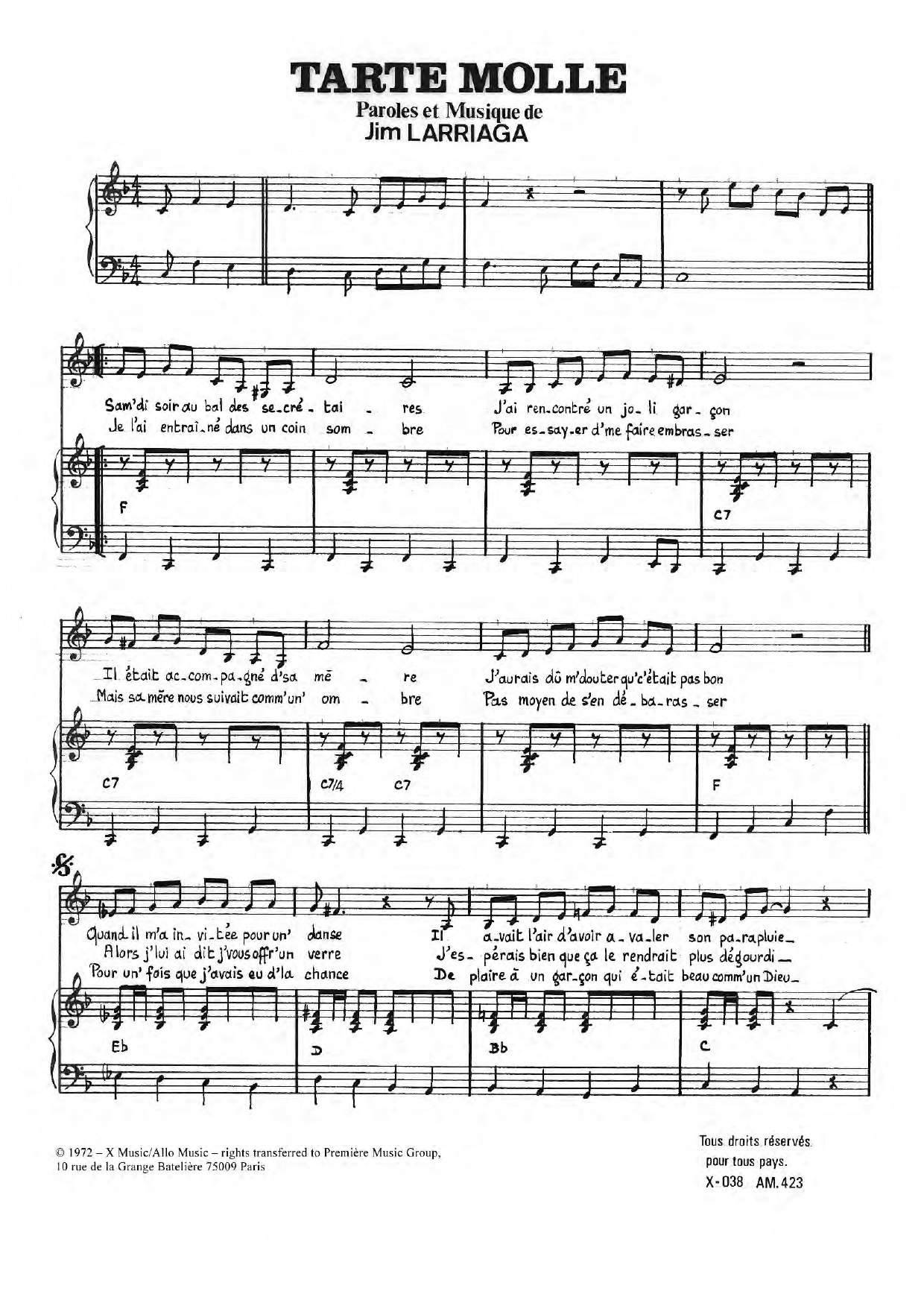 Download or print Charlotte Julian Tarte Molle sheet music, chords and digital score arranged for Piano & Vocal. This Pop score includes 3 page(s).