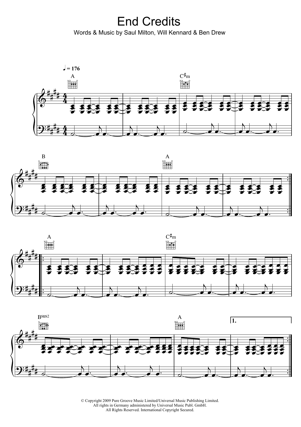 Download or print Chase & Status End Credits (featuring Plan B) sheet music, chords and digital score arranged for Piano, Vocal & Guitar Chords. This Pop score includes 7 page(s).
