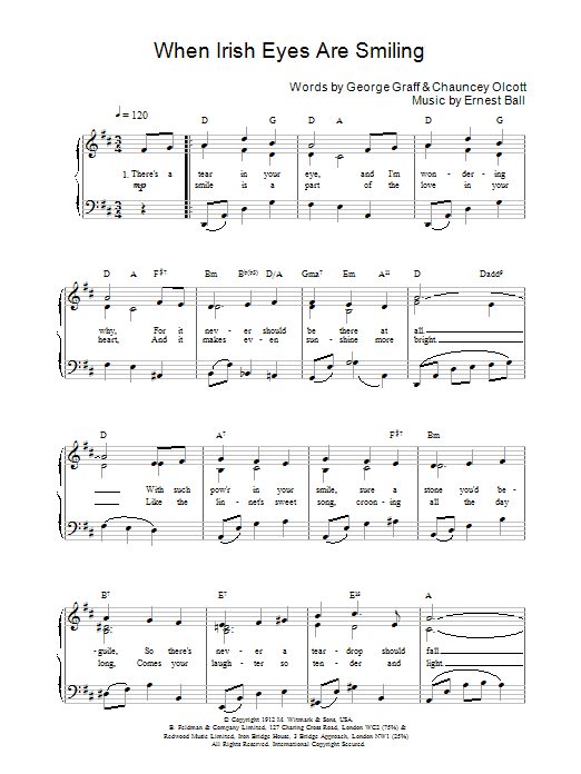 Download or print Chauncey Olcott When Irish Eyes Are Smiling sheet music, chords and digital score arranged for Accordion. This Folk score includes 2 page(s).