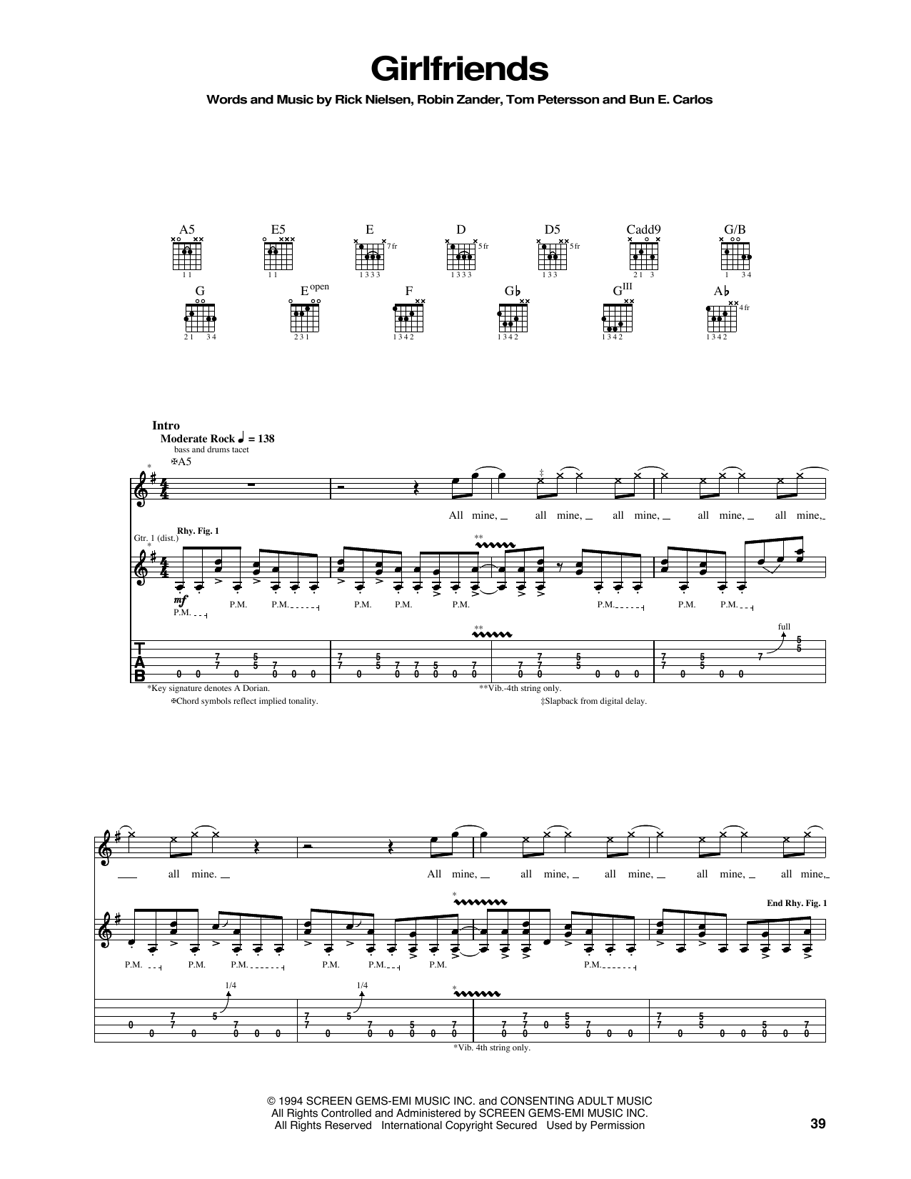 Download or print Cheap Trick Girlfriends sheet music, chords and digital score arranged for Guitar Tab. This Pop score includes 7 page(s).