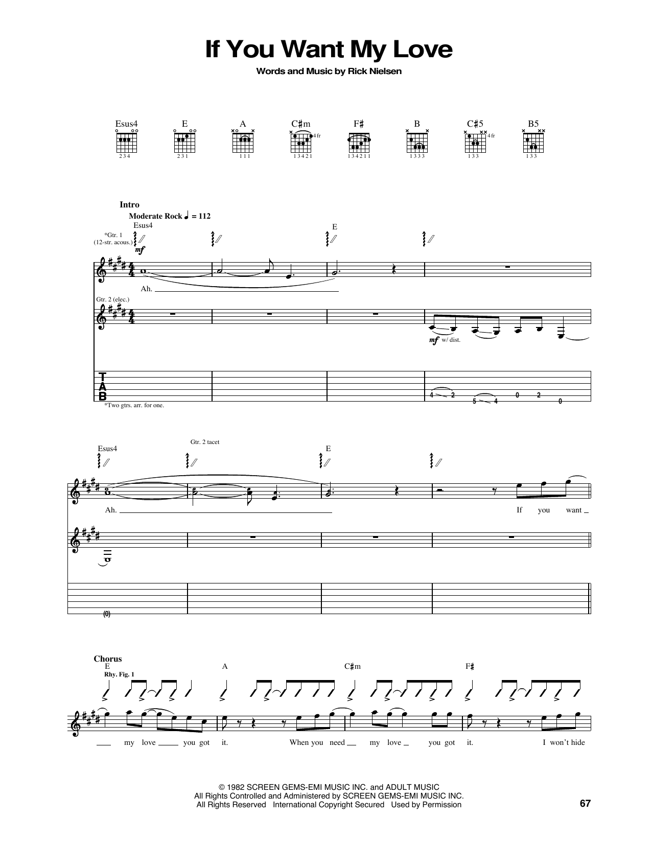 Download or print Cheap Trick If You Want My Love sheet music, chords and digital score arranged for Guitar Tab. This Pop score includes 6 page(s).