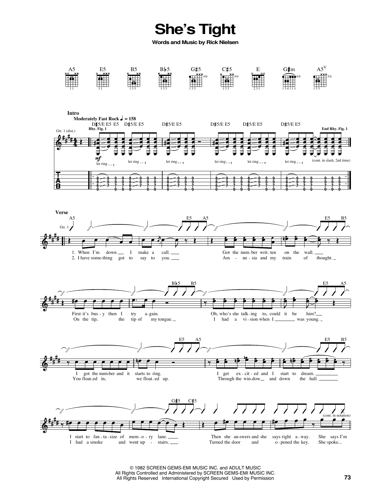 Download or print Cheap Trick She's Tight sheet music, chords and digital score arranged for Guitar Tab. This Rock score includes 3 page(s).