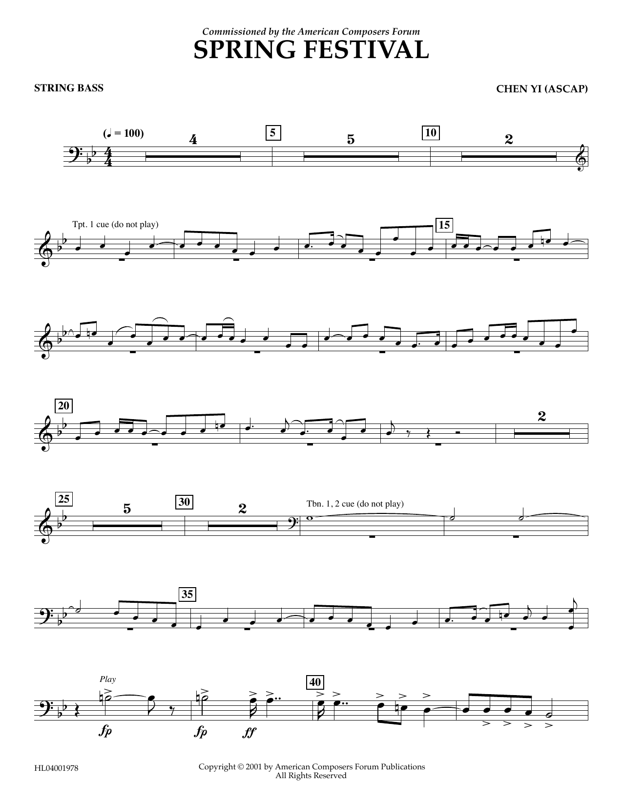 Download or print Chen Yi Spring Festival - String Bass sheet music, chords and digital score arranged for Concert Band. This Concert score includes 2 page(s).