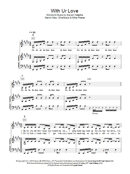 Download or print Cher Lloyd With Ur Love sheet music, chords and digital score arranged for Piano, Vocal & Guitar Chords. This Pop score includes 6 page(s).