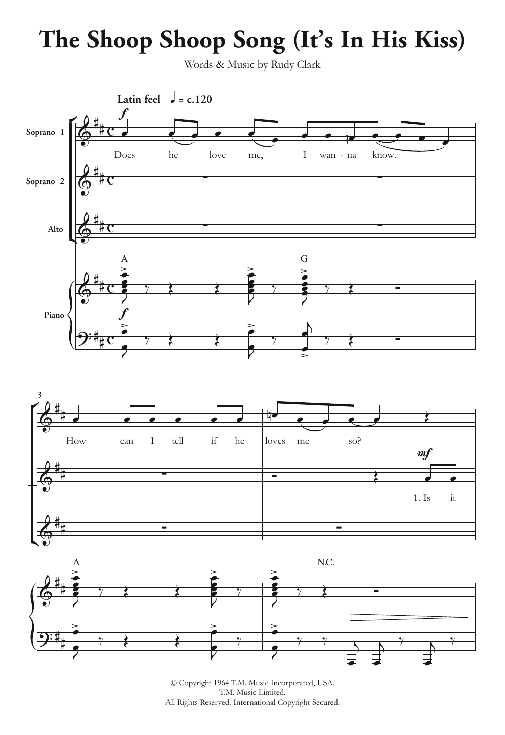 Quick facts The Shoop Shoop Song (It's In His Kiss) (arr. Berty Rice) about digital sheet music