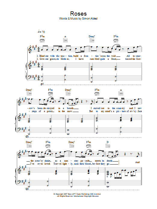 Download or print Cherry Ghost Roses sheet music, chords and digital score arranged for Piano, Vocal & Guitar Chords. This Pop score includes 3 page(s).
