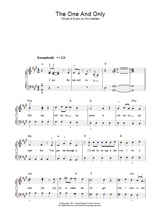 Download or print Chesney Hawkes The One And Only sheet music, chords and digital score arranged for Guitar Chords/Lyrics. This Pop score includes 3 page(s).
