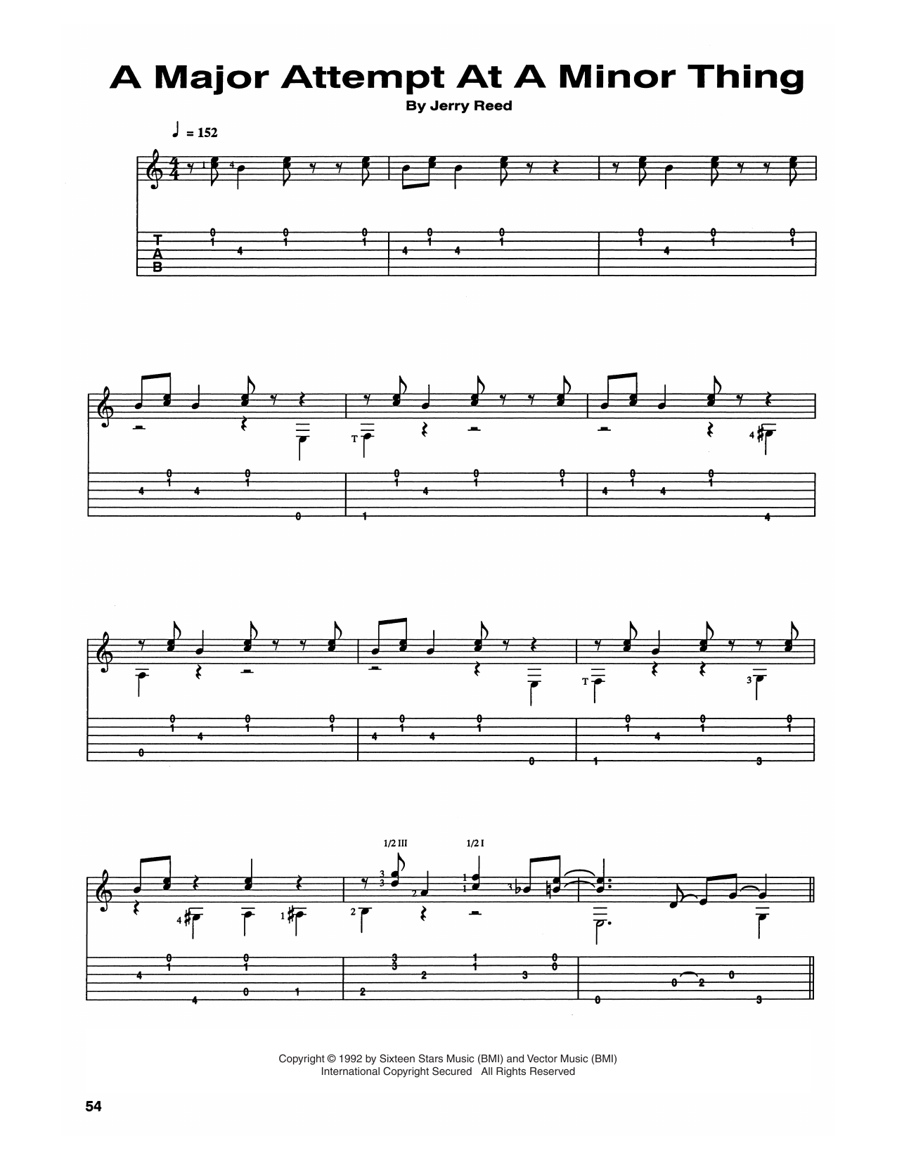 Download or print Chet Atkins and Jerry Reed A Major Attempt At A Minor Thing sheet music, chords and digital score arranged for Guitar Tab. This Country score includes 7 page(s).