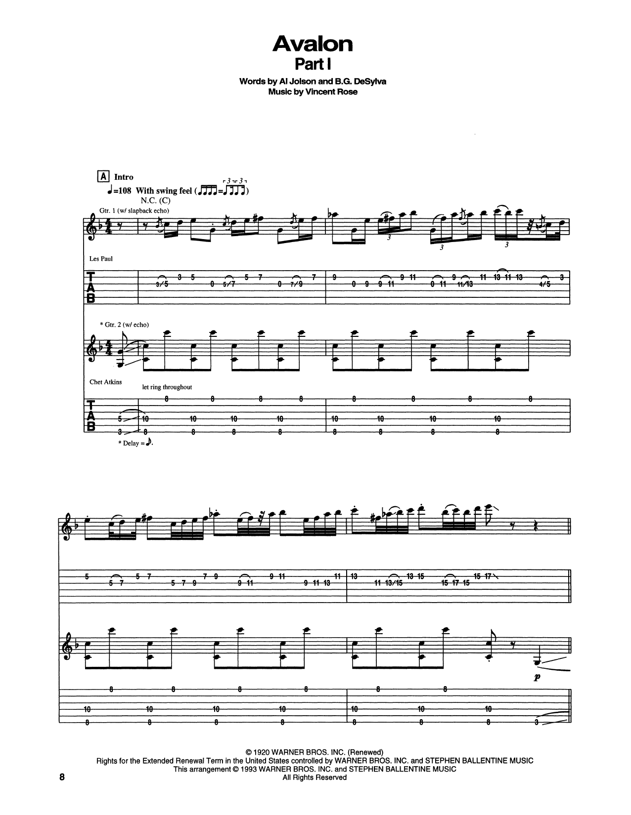 Download or print Chet Atkins Avalon sheet music, chords and digital score arranged for Guitar Tab. This Country score includes 14 page(s).