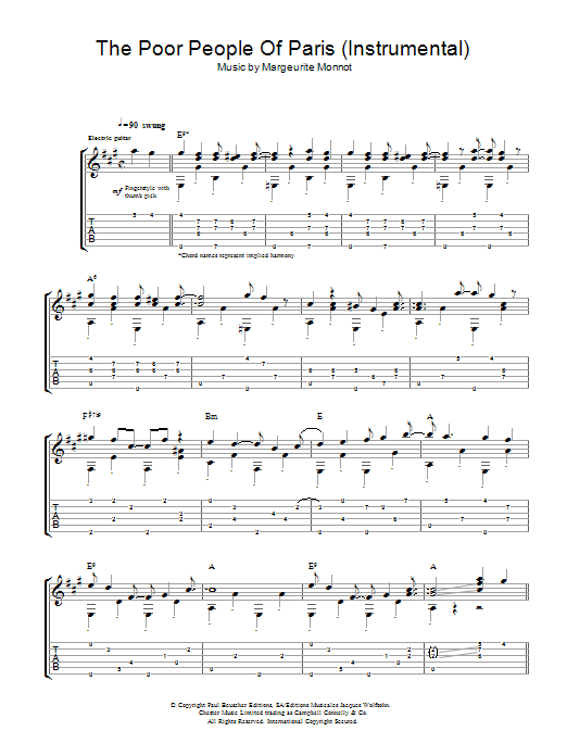 Download or print Chet Atkins The Poor People Of Paris (Instrumental) sheet music, chords and digital score arranged for Guitar Tab. This Folk score includes 4 page(s).
