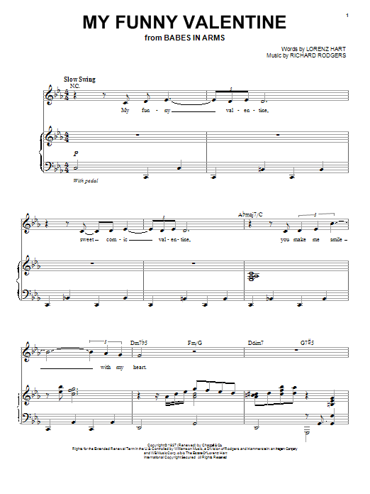 Download or print Chet Baker My Funny Valentine sheet music, chords and digital score arranged for Guitar Chords/Lyrics. This Jazz score includes 1 page(s).