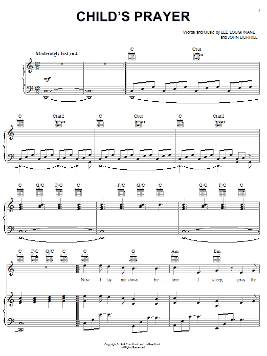 Download or print Chicago Child's Prayer sheet music, chords and digital score arranged for Piano, Vocal & Guitar Chords (Right-Hand Melody). This Children score includes 7 page(s).