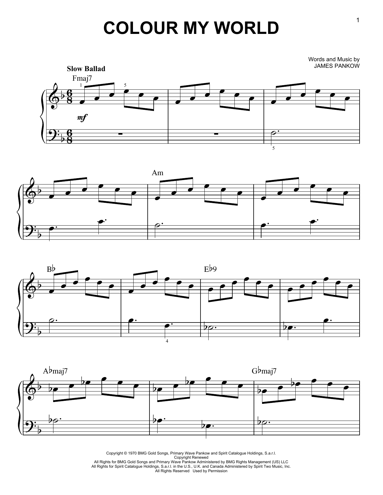 Download or print Chicago Colour My World sheet music, chords and digital score arranged for Easy Piano. This Rock score includes 4 page(s).