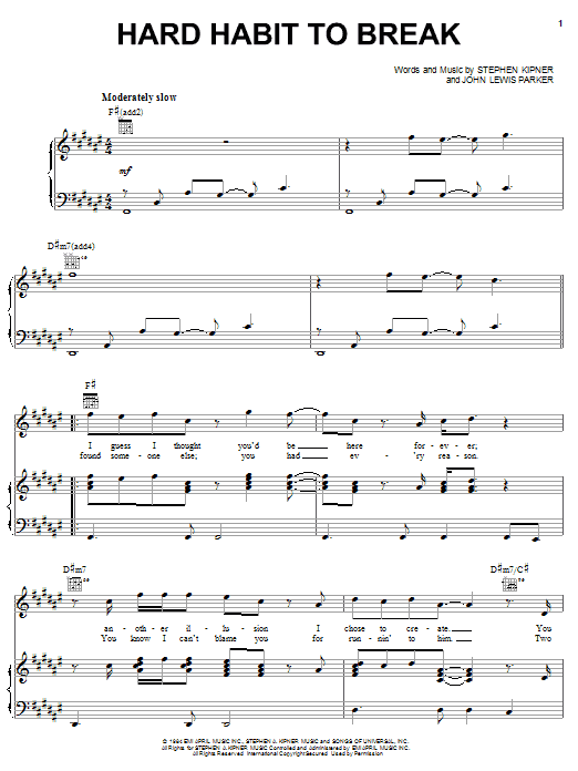 Download or print Chicago Hard Habit To Break sheet music, chords and digital score arranged for Piano, Vocal & Guitar Chords (Right-Hand Melody). This Pop score includes 5 page(s).