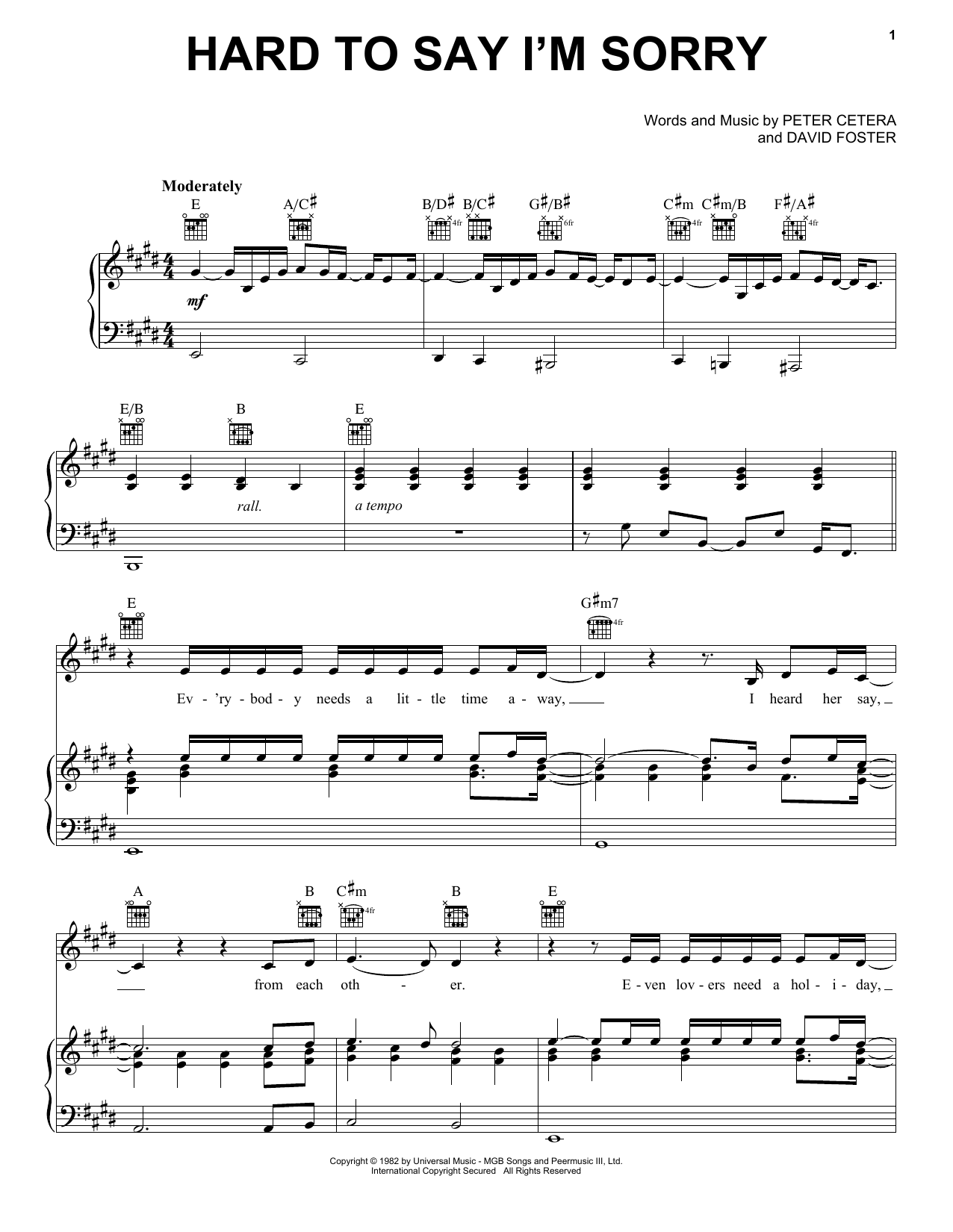Quick facts Hard To Say I'm Sorry about digital sheet music