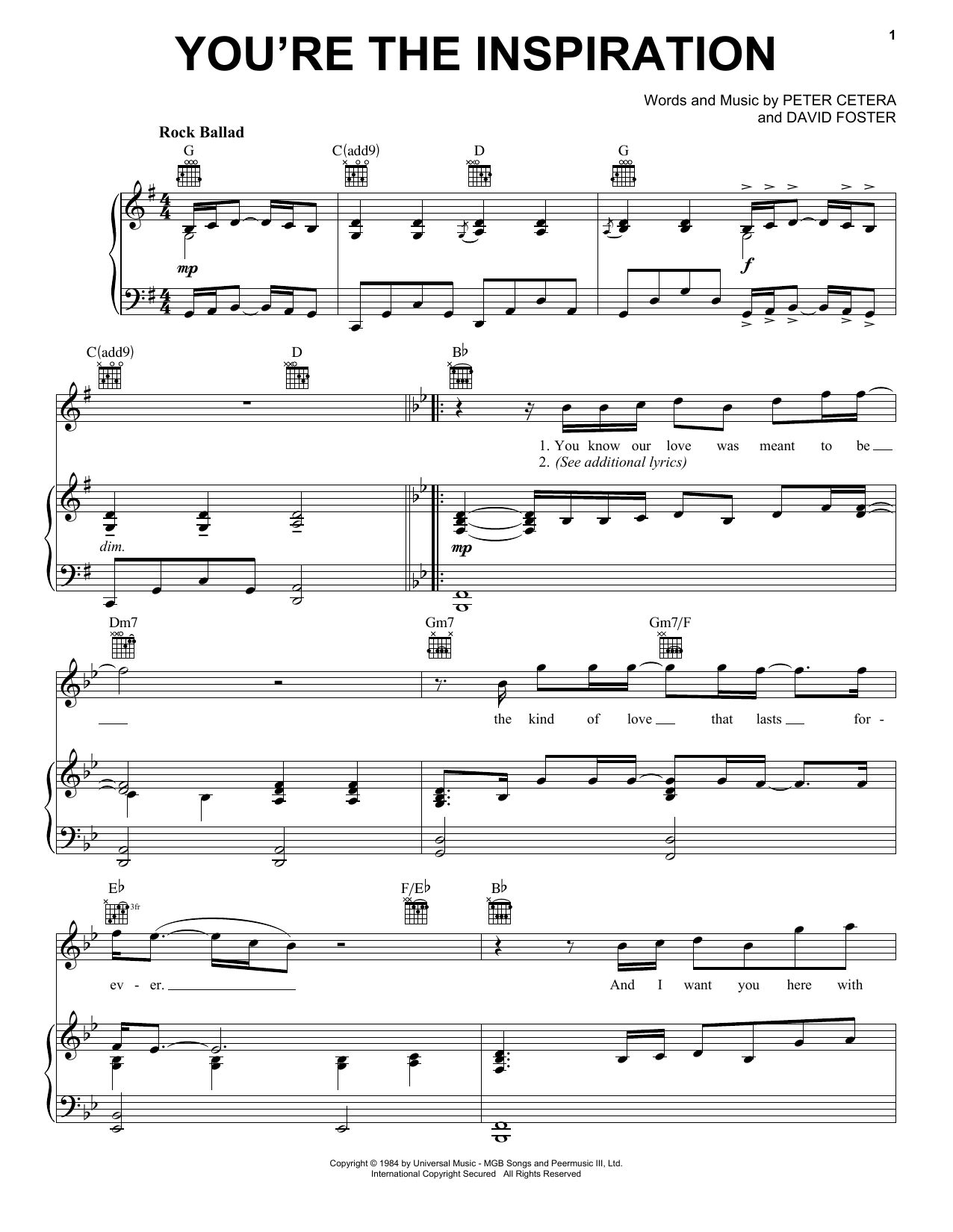 Quick facts You're The Inspiration about digital sheet music