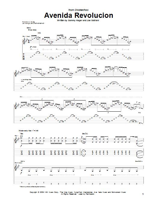 Download or print Chickenfoot Avenida Revolucion sheet music, chords and digital score arranged for Guitar Tab. This Pop score includes 18 page(s).