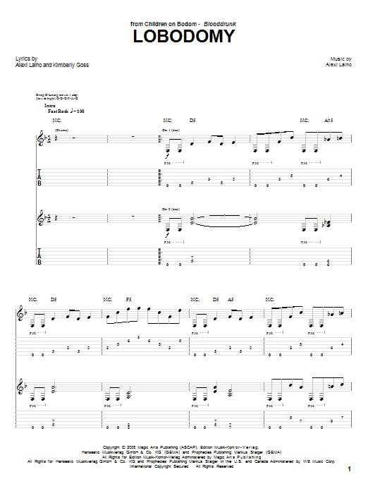 Download or print Children Of Bodom LoBodomy sheet music, chords and digital score arranged for Guitar Tab. This Metal score includes 14 page(s).