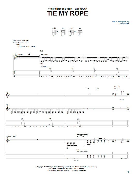 Download or print Children Of Bodom Tie My Rope sheet music, chords and digital score arranged for Guitar Tab. This Metal score includes 15 page(s).