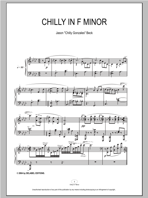Download or print Chilly Gonzales Chilly In F Minor sheet music, chords and digital score arranged for Piano Solo. This Pop score includes 6 page(s).