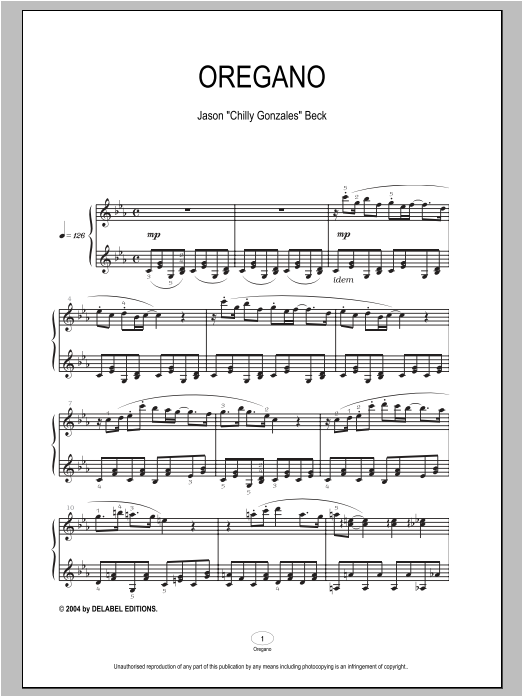 Download or print Chilly Gonzales Oregano sheet music, chords and digital score arranged for Piano Solo. This Pop score includes 3 page(s).