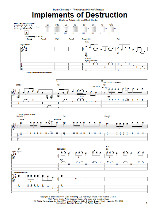 Download or print Chimaira Implements Of Destruction sheet music, chords and digital score arranged for Guitar Tab. This Metal score includes 21 page(s).