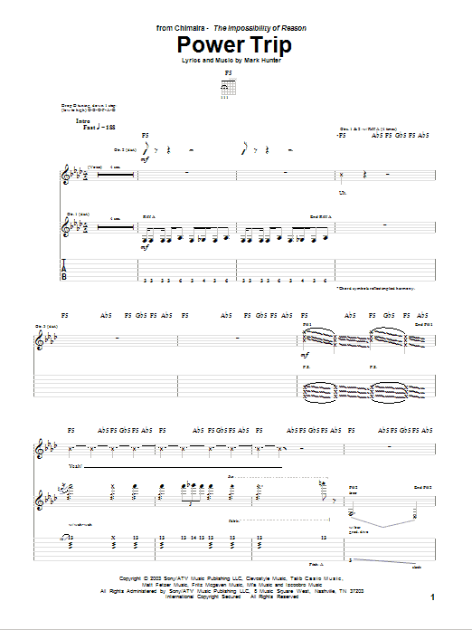 Download or print Chimaira Power Trip sheet music, chords and digital score arranged for Guitar Tab. This Metal score includes 9 page(s).