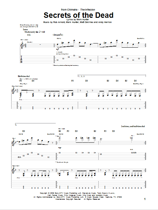 Download or print Chimaira Secrets Of The Dead sheet music, chords and digital score arranged for Guitar Tab. This Metal score includes 13 page(s).