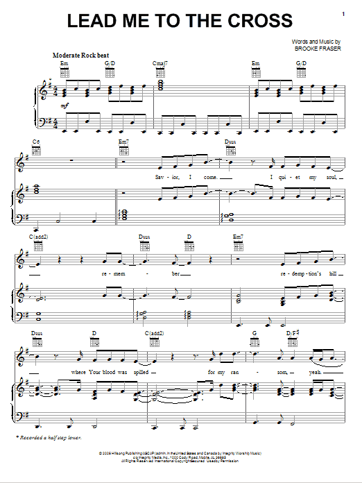 Download or print Chris And Conrad Lead Me To The Cross sheet music, chords and digital score arranged for Piano, Vocal & Guitar Chords (Right-Hand Melody). This Christian score includes 6 page(s).