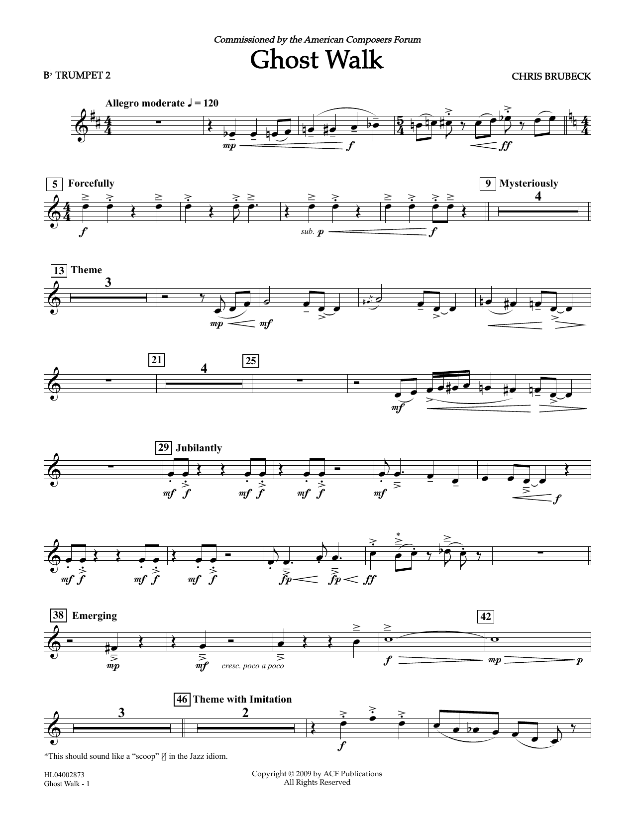 Download or print Chris Brubeck Ghost Walk - Bb Trumpet 2 sheet music, chords and digital score arranged for Concert Band. This Concert score includes 2 page(s).
