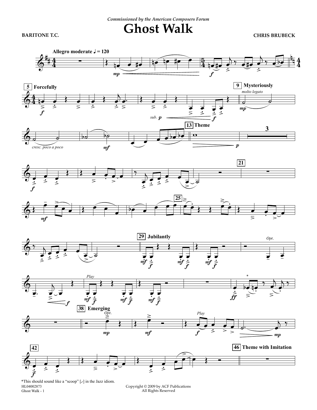 Download or print Chris Brubeck Ghost Walk - Euphonium in Treble Clef sheet music, chords and digital score arranged for Concert Band. This Concert score includes 2 page(s).