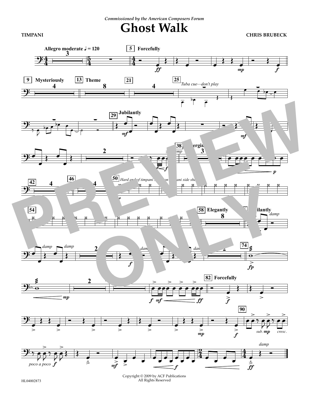 Download or print Chris Brubeck Ghost Walk - Timpani sheet music, chords and digital score arranged for Concert Band. This Concert score includes 1 page(s).
