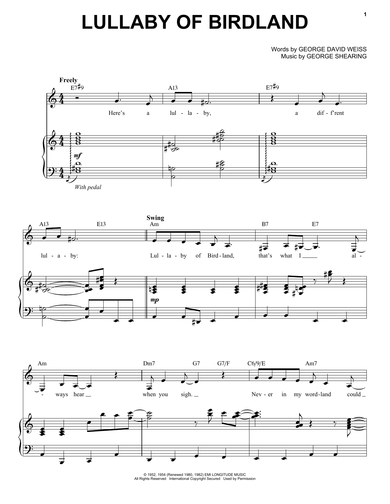 Download or print Chris Connor Lullaby Of Birdland sheet music, chords and digital score arranged for Piano & Vocal. This Jazz score includes 5 page(s).