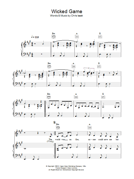 Download or print Chris Isaak Wicked Game sheet music, chords and digital score arranged for Guitar Lead Sheet. This Rock score includes 2 page(s).