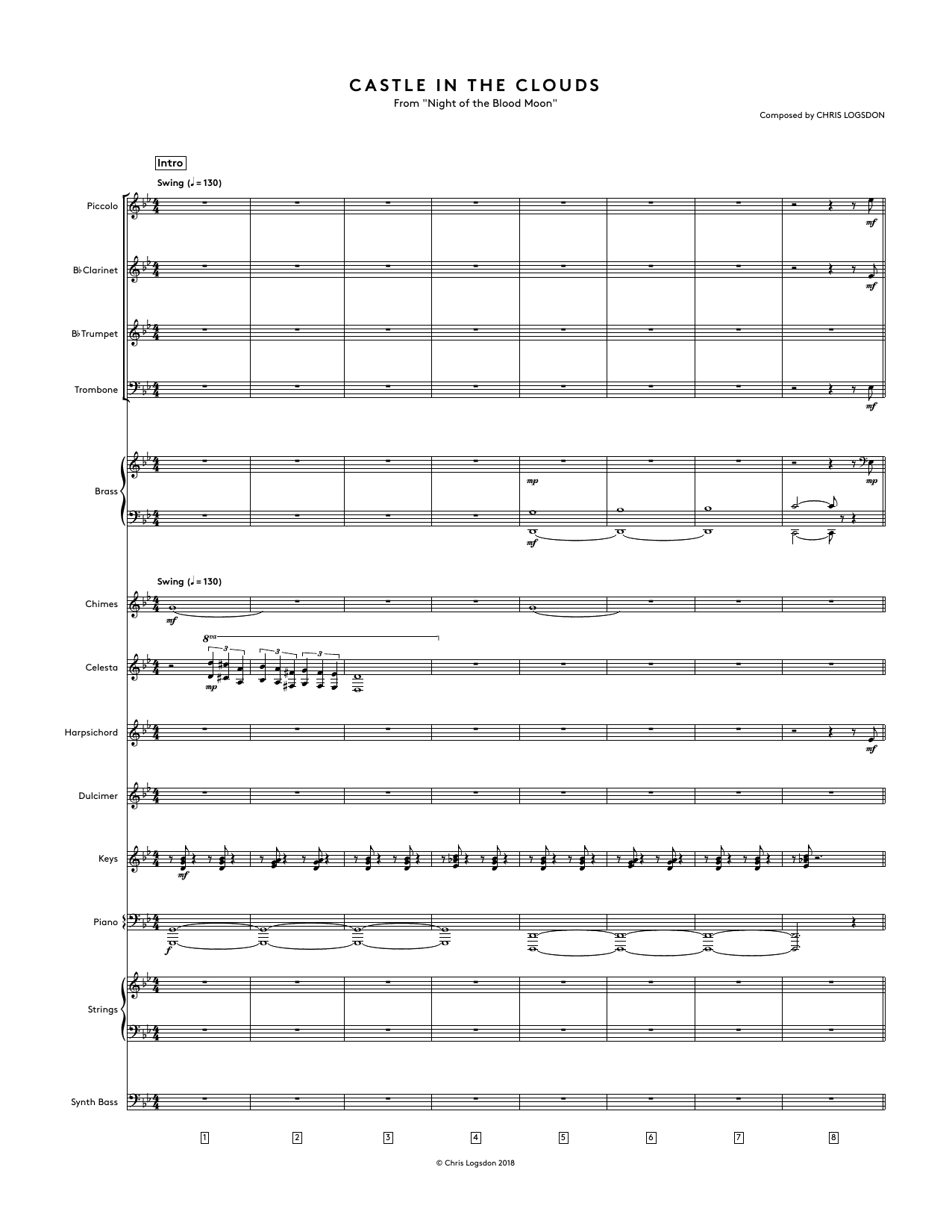 Download or print Chris Logsdon Castle In The Clouds (from Night of the Blood Moon) - Full Score sheet music, chords and digital score arranged for Performance Ensemble. This Video Game score includes 7 page(s).