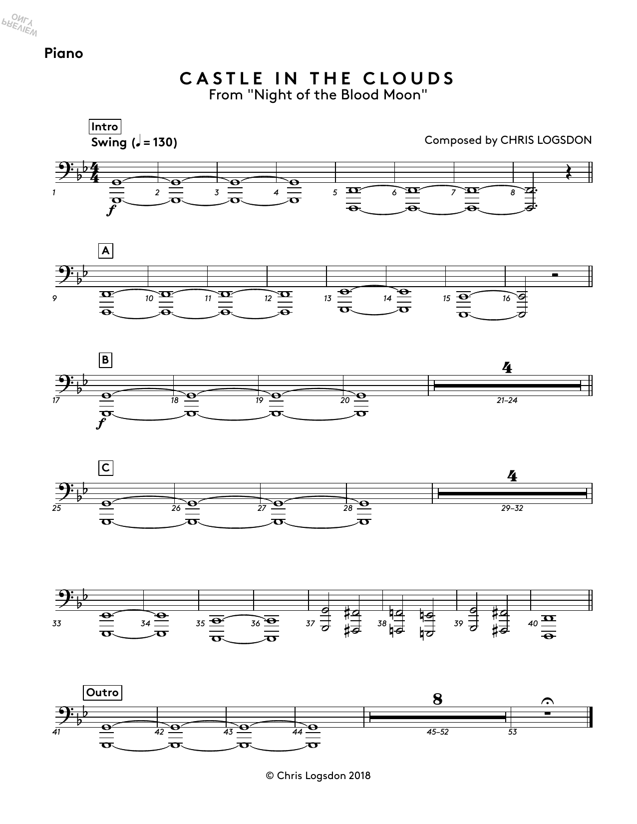 Download or print Chris Logsdon Castle In The Clouds (from Night of the Blood Moon) - Piano sheet music, chords and digital score arranged for Performance Ensemble. This Video Game score includes 1 page(s).