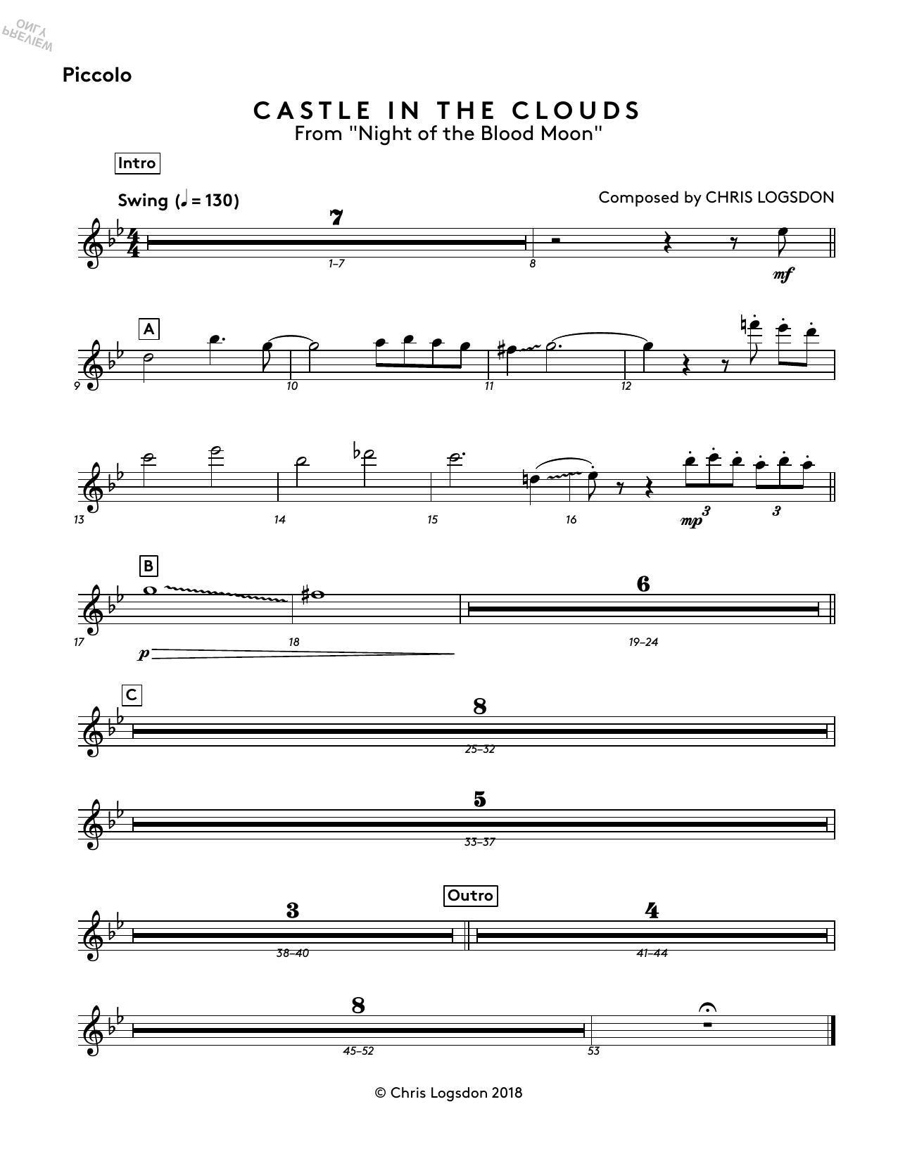 Download or print Chris Logsdon Castle In The Clouds (from Night of the Blood Moon) - Piccolo sheet music, chords and digital score arranged for Performance Ensemble. This Video Game score includes 1 page(s).