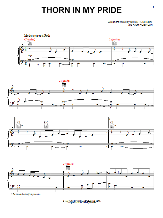Download or print Chris Robinson Thorn In My Pride sheet music, chords and digital score arranged for Piano, Vocal & Guitar Chords (Right-Hand Melody). This Pop score includes 10 page(s).