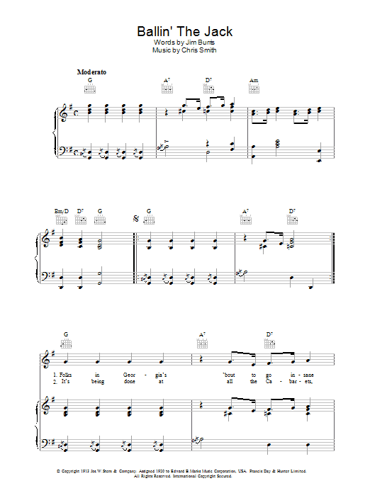 Download or print Jelly Roll Morton Ballin' The Jack sheet music, chords and digital score arranged for Piano, Vocal & Guitar Chords. This Jazz score includes 6 page(s).