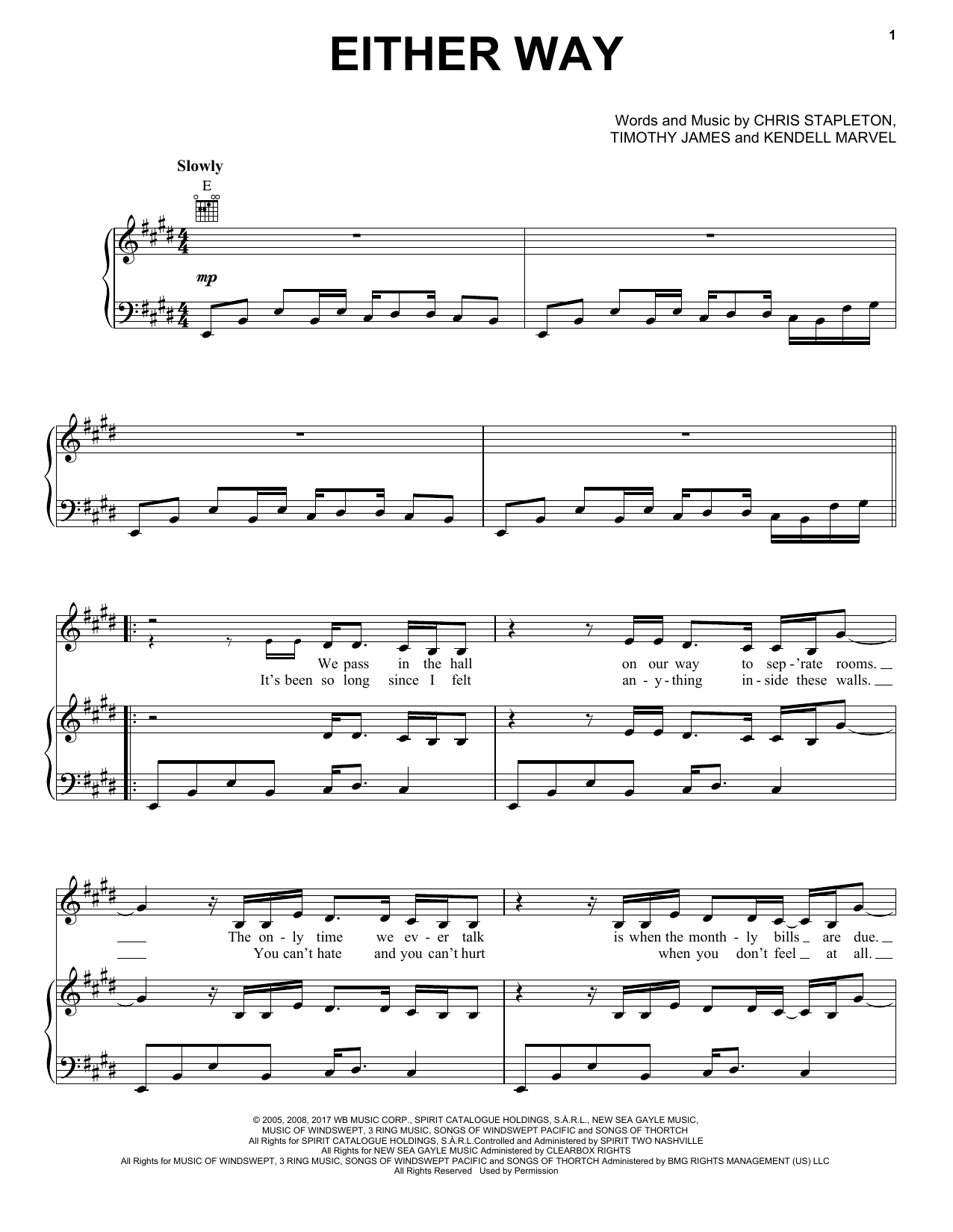 Download or print Chris Stapleton Either Way sheet music, chords and digital score arranged for Guitar Chords/Lyrics. This Country score includes 2 page(s).