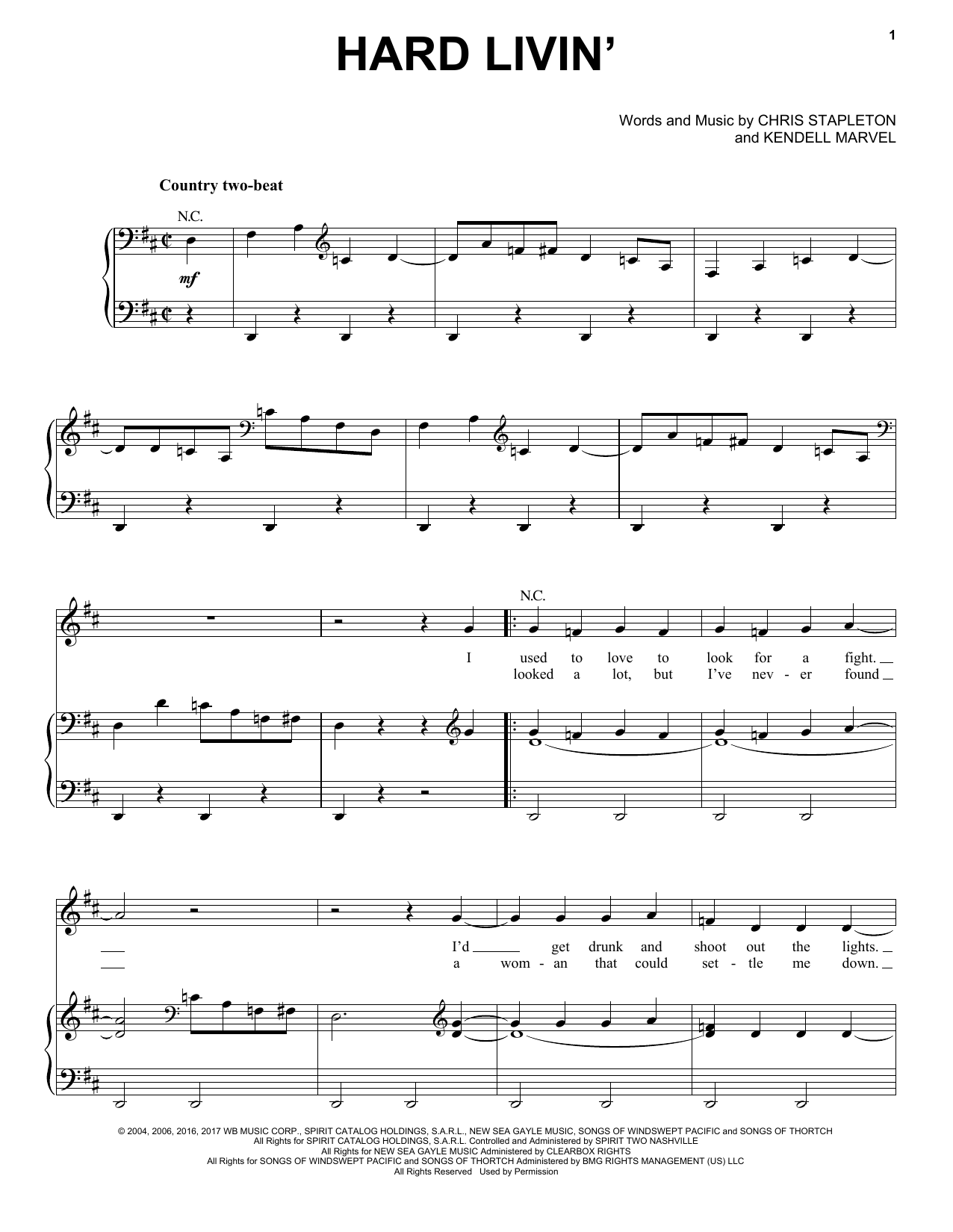 Download or print Chris Stapleton Hard Livin' sheet music, chords and digital score arranged for Piano, Vocal & Guitar Chords (Right-Hand Melody). This Country score includes 5 page(s).