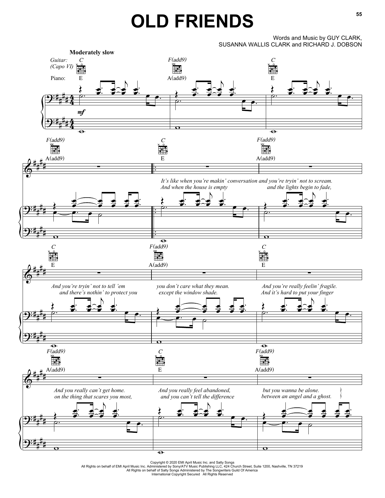 Download or print Chris Stapleton Old Friends sheet music, chords and digital score arranged for Piano, Vocal & Guitar Chords (Right-Hand Melody). This Country score includes 3 page(s).