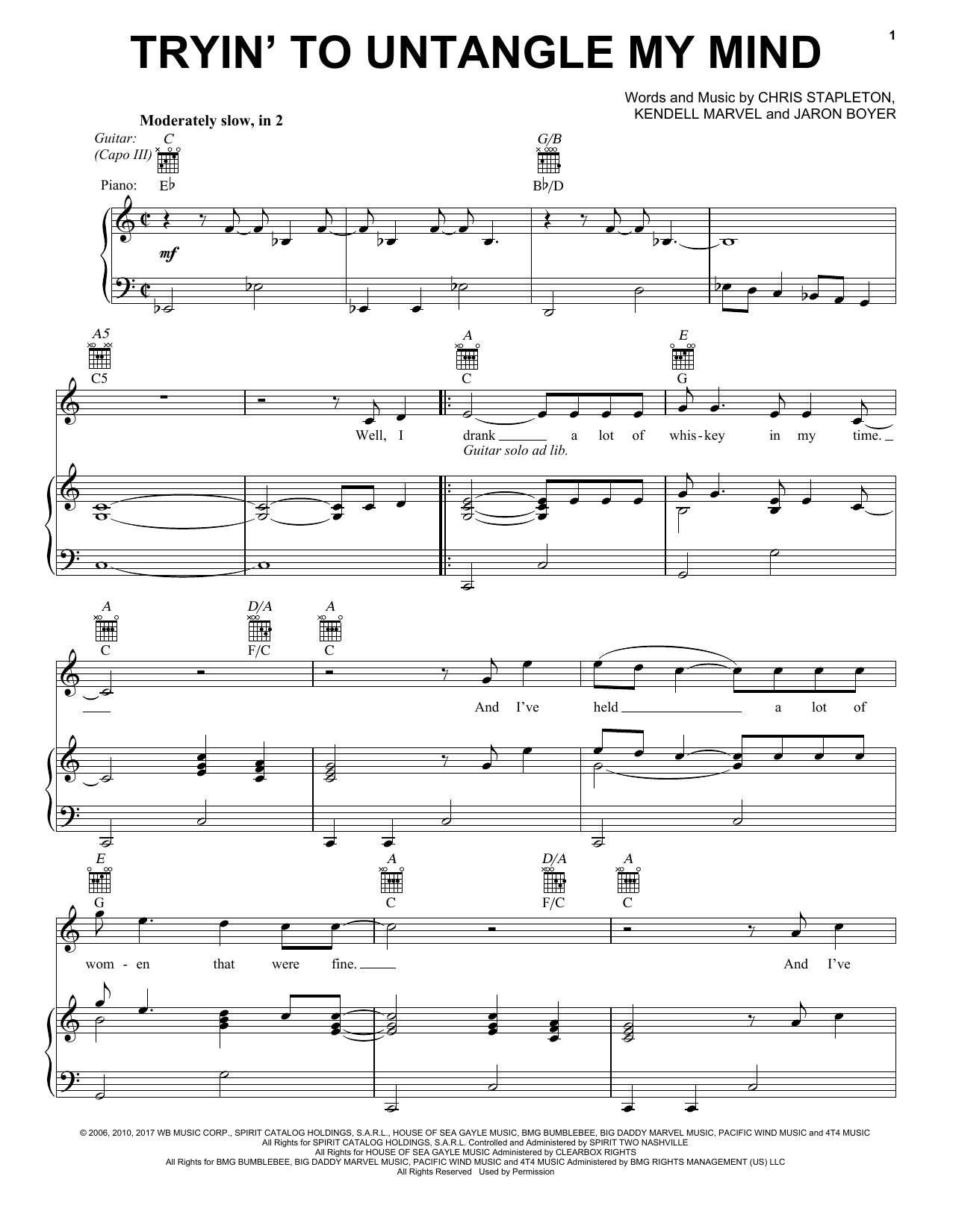 Download or print Chris Stapleton Tryin' To Untangle My Mind sheet music, chords and digital score arranged for Guitar Chords/Lyrics. This Country score includes 2 page(s).