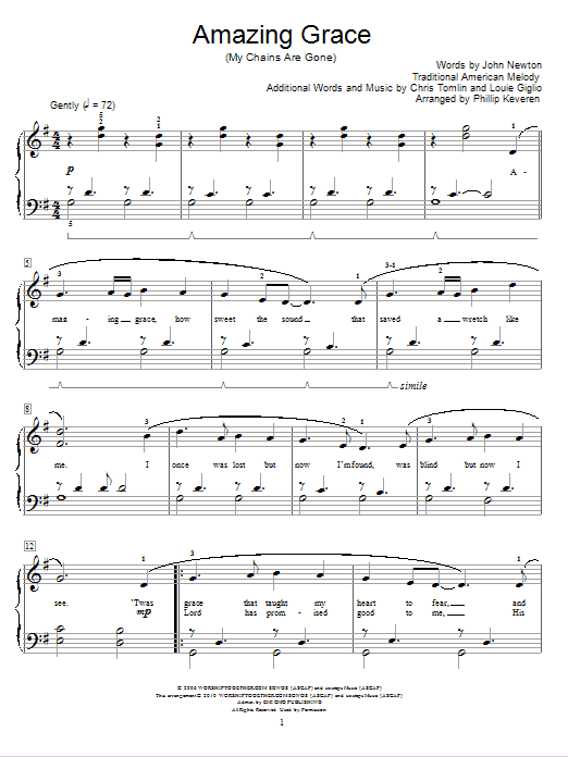 Download or print Chris Tomlin Amazing Grace (My Chains Are Gone) (arr. Phillip Keveren) sheet music, chords and digital score arranged for Educational Piano. This Praise & Worship score includes 4 page(s).