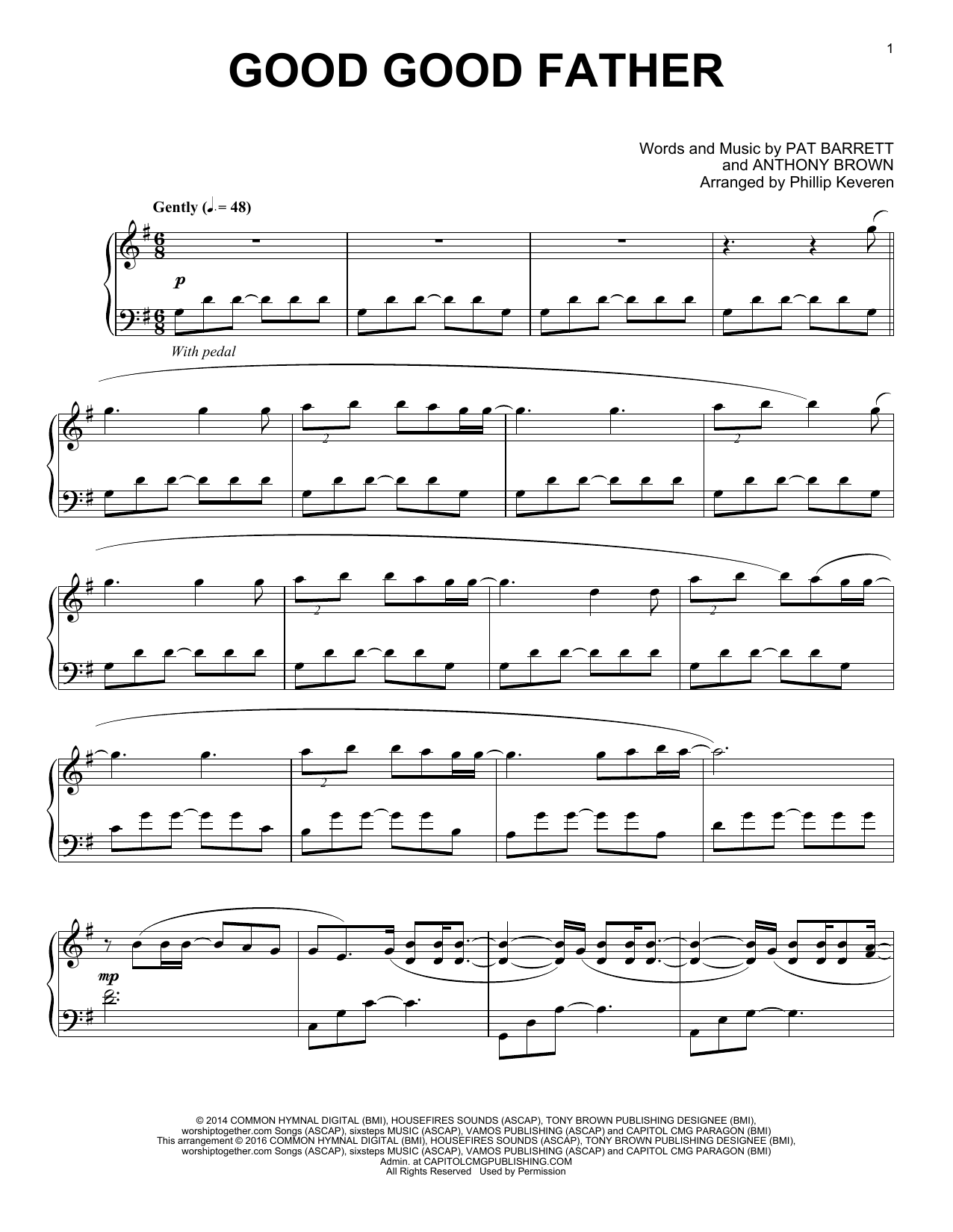 Download or print Chris Tomlin Good Good Father (arr. Phillip Keveren) sheet music, chords and digital score arranged for Piano Solo. This Praise & Worship score includes 3 page(s).